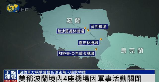 美国联邦航空管理局9日发布消息称,受到与保障国家安全有关的、事先未计划的军事活动影响,包括华沙肖邦机场在内的波兰境内四座机场9日晚关闭。波兰武装力量作战司令部随后证实,当晚多次发现无人机状物体侵入领空,已开火击落,正搜寻残骸。