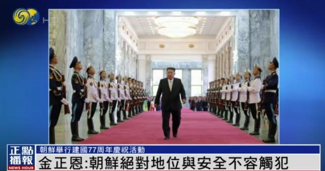 据朝中社10日报道,朝鲜9日在首都平壤举行建国77周年庆祝活动,朝鲜领导人金正恩在活动上发表讲话称,任何人或势力都不能触犯朝鲜的绝对地位和安全。金正恩还在讲话中称向参加海外军事作战的朝军将士致敬。